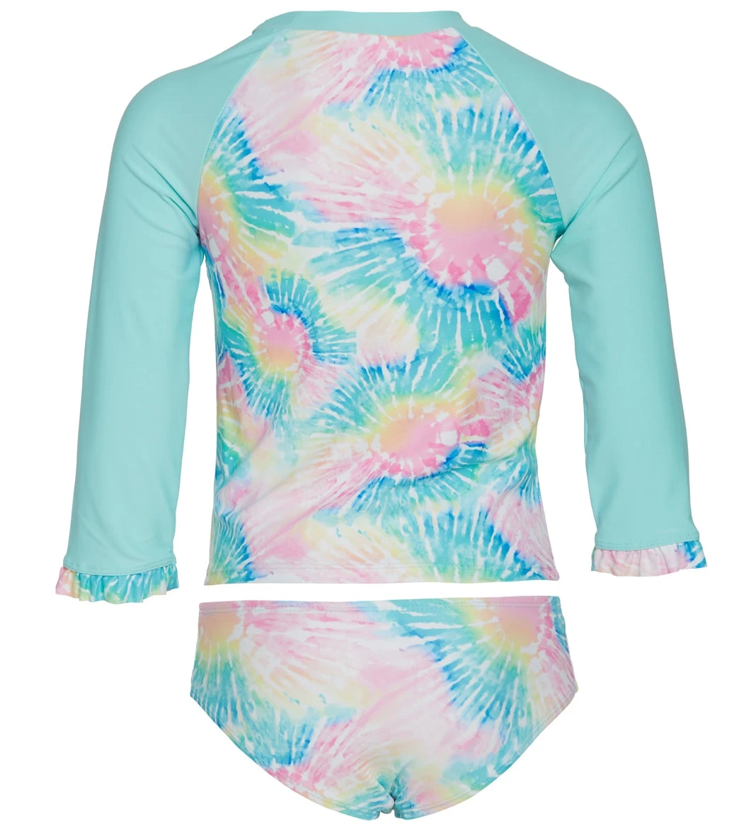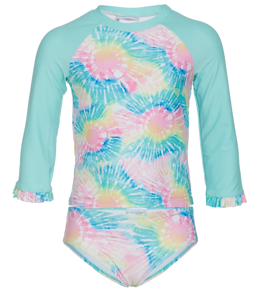 Say “shello” to summer with the protective, comfortable Shelloha Girls’ Neon Pastel Tie Dye Two Piece Long Sleeve Rashguard Set (Baby, Toddler), featuring a highly flexible fit that’s ideal for the energy of your little one.