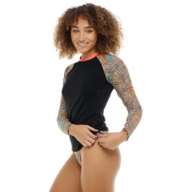 Sporti X Stef Corgel Manhattan Beach Palm Shadow Zip Front Long-Sleeve One Piece Swimsuit