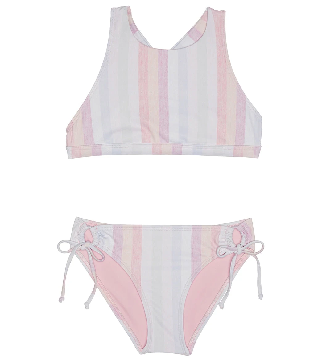 - The High Neck Bra and Tunnel Side Bikini Bottom by Splendid Girls will get your little one ready for the water with a super soft striped fabric and easy-to-wear style.