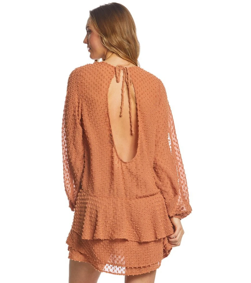 The Beach Riot Swahili Caitlin Dress features a textured fabric with a layered look. The plunging neckline and cut-out at back, paired with this unique stitching makes this a one-of-a-kind, just like you.Â