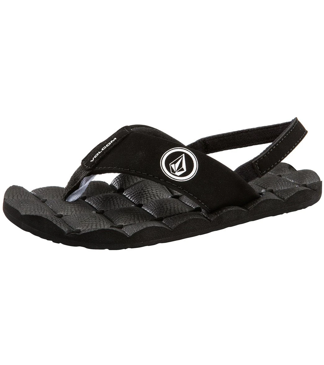 The Volcom Boys’ Recliner Sandal features a comfy, cushy sponge-like footbed. For extended wear, a back strap keeps his little foot secure so he can walk or run around all day.Â