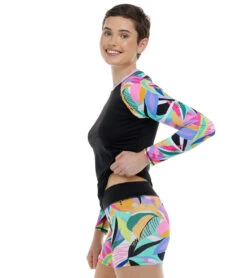 Keep calm and paddle on. The Next by Athena Women’s Sunset Palms Surf Shirt offers UPF 50 sun protection, four-way stretch and quick-drying fabric for a suit that keeps up with your active lifestyle.